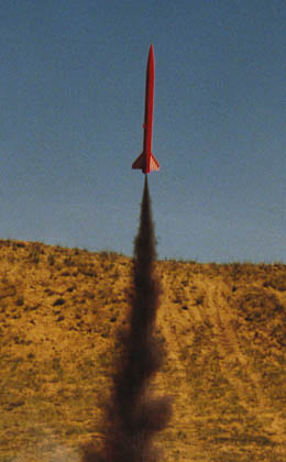 This is my third Aerotech rocket I built. It is very light, so I can fly it on most any motor through G without exceeding the one pound limit. It is basically an Arreaux without a payload section. Like all Aerotech kits it comes in a box, and has molded plastic fins with through-the-wall (and to the motor mount) fin mounting. The kit came with a creased body tube, so I called Aerotech and got a replacement in a few days. Nice service. I had to replace the front 7.5" of the body tube after the zipper, finished repair 7/30/97.